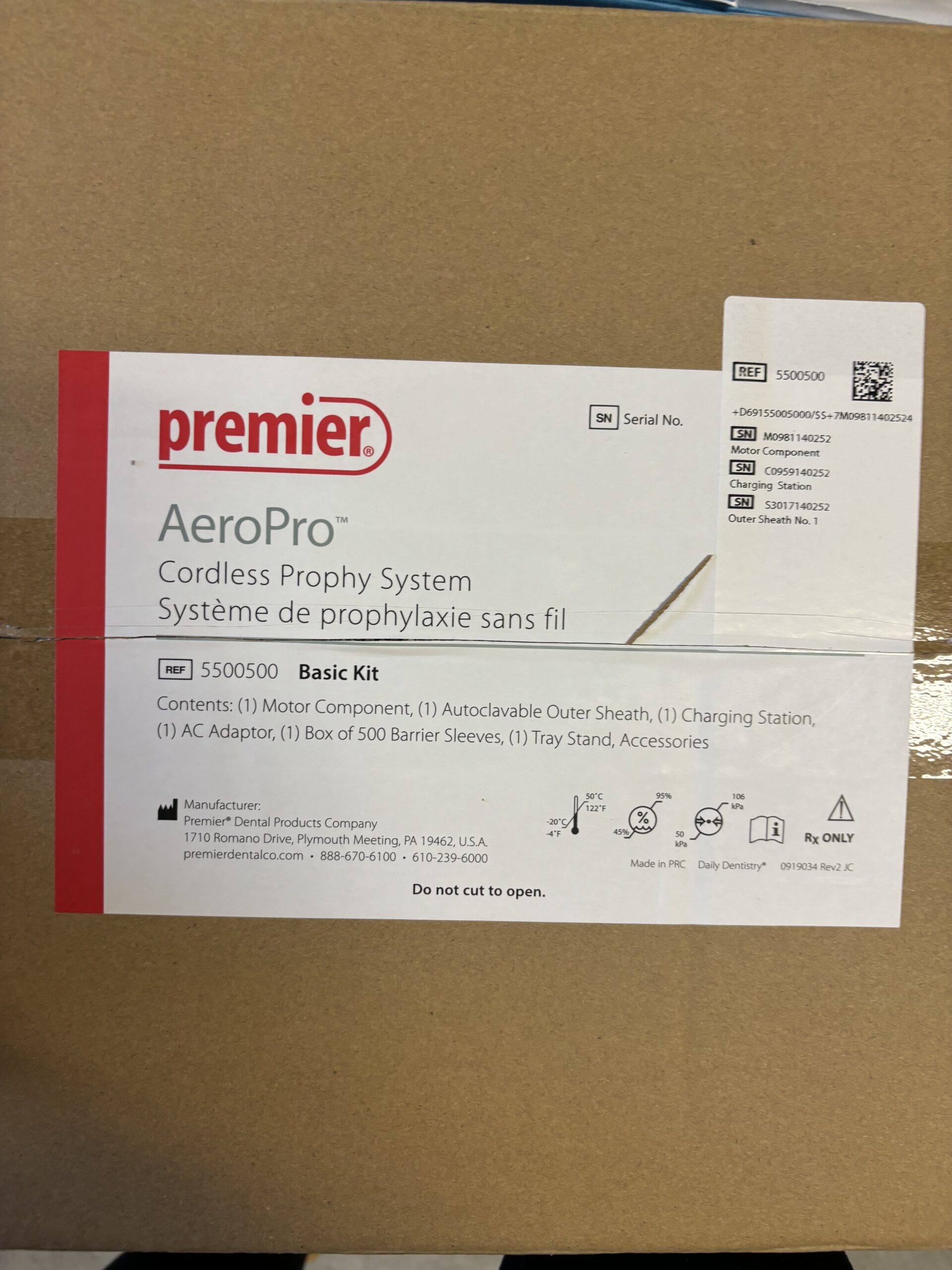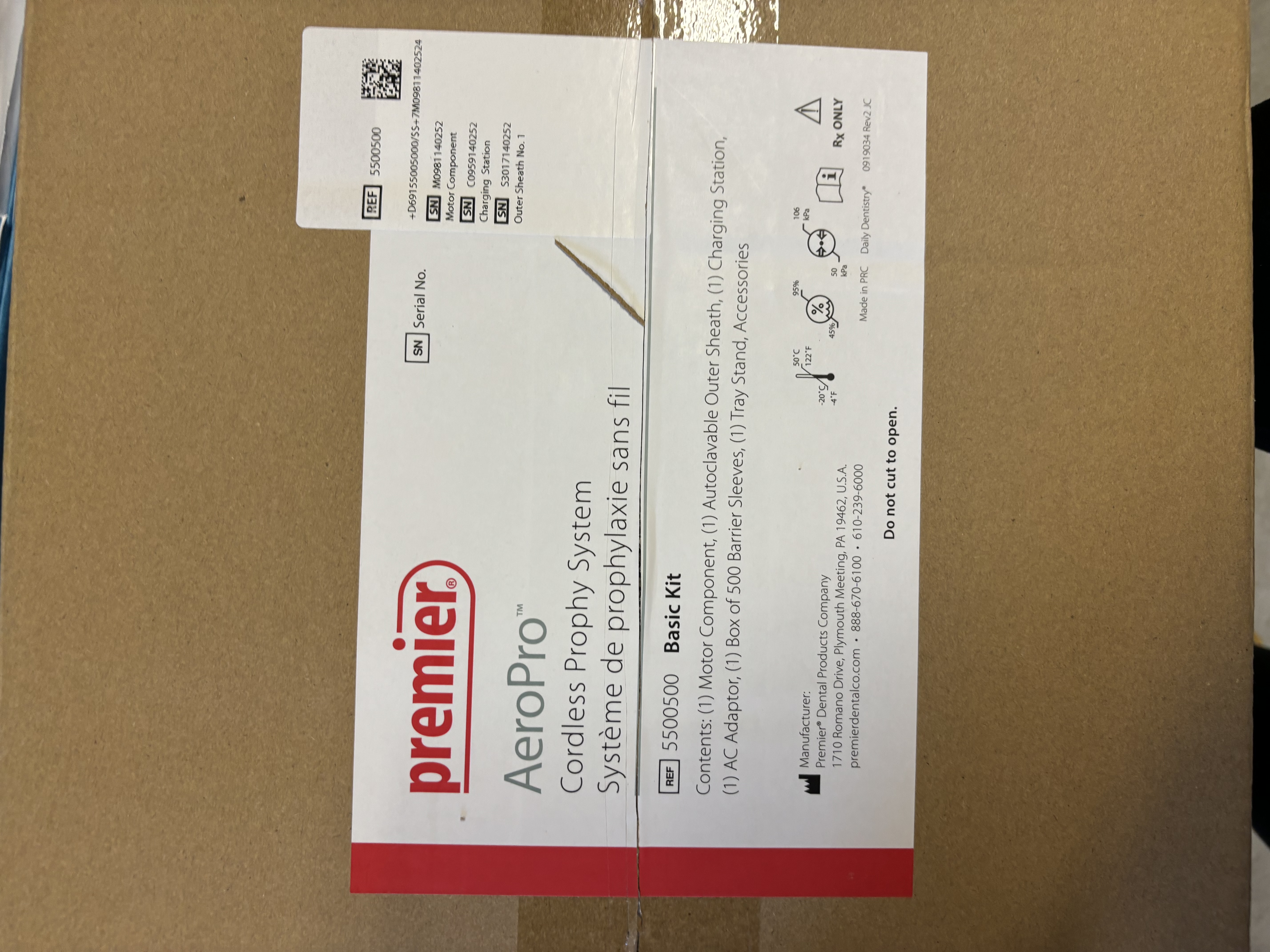 Brand new/sealed Premier Aero Pro cordless prophy system (2), Darby Azure Pro LED curing light (1),