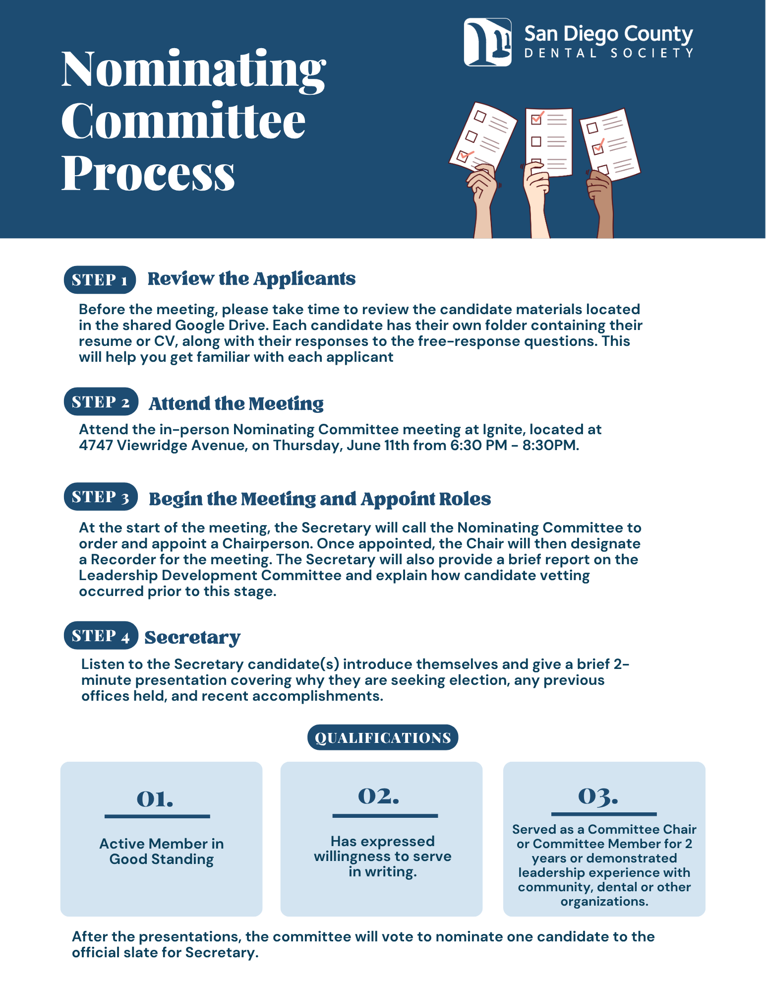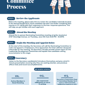 Join us on June 11th at 6:30 PM at Ignite sparked by BBB for a one-time Nominating Committee meeting. You’ll play a crucial role in selecting the next leaders of our organization in 2026. Dinner will be on us! Per our bylaws, our nominating committee must consist of 15-21 members. If interested, please register below to secure your spot. You will be contacted if you are on the committee.